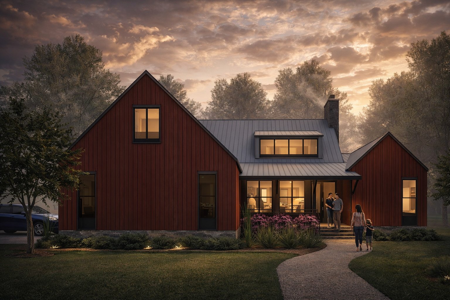 Concept design for a 2,800 SF two-story home with four bedrooms, three bathrooms designed with contemporary forms and features.