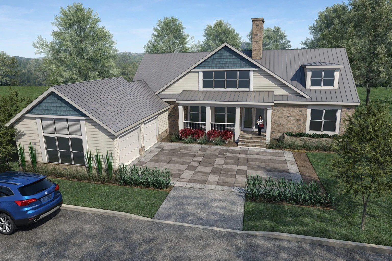 Concept design for a 3,075 SF one-story home with four bedrooms and three baths. The fourth bedroom is designed to alternatively function as an office.